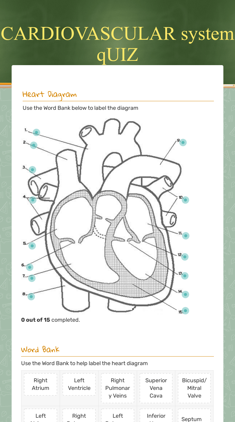 March 27, 2021 at 7:02 am. Use the above anatomy chart for a reference or study guide. If you want to redo an answer, click on the box and the answer will go back to the top so you can move it to another box. 28.10.2021 · comprised of the heart, blood vessels and the blood itself, it is divided into two loops which both begin in the heart. Click on the tags below to find other quizzes on the same subject.